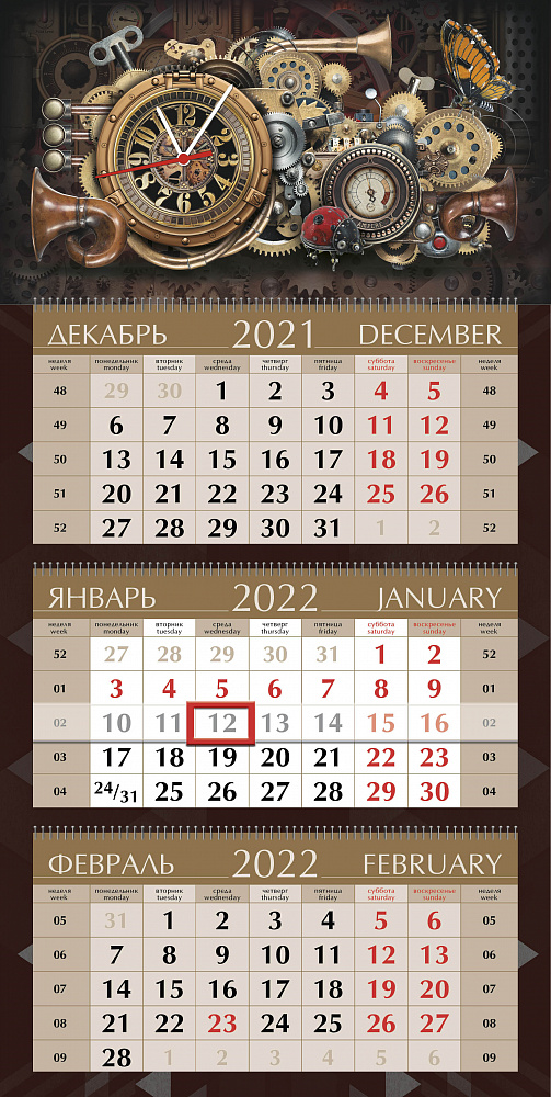 Квартальные календари с часами
