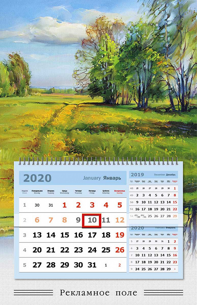 календарные блоки — 335 х 235 мм.картон 300 г/м2, полноцветная печать с ламинацией.