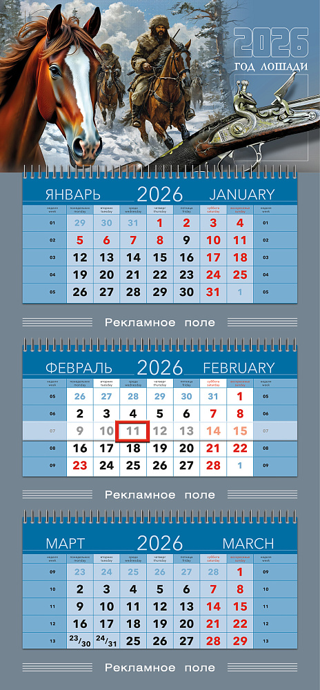 календарные блоки — 335 х 160 мм.