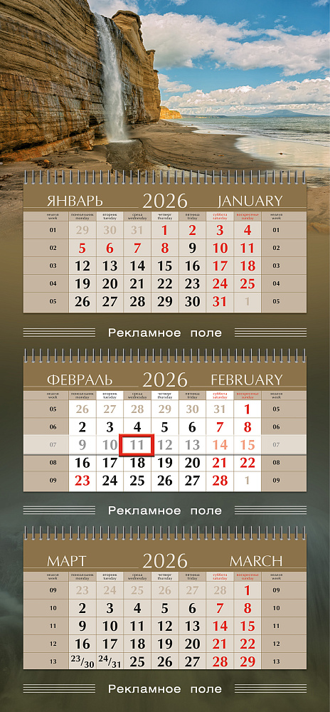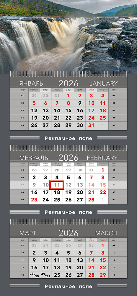 календарные блоки — 335 х 160 мм.