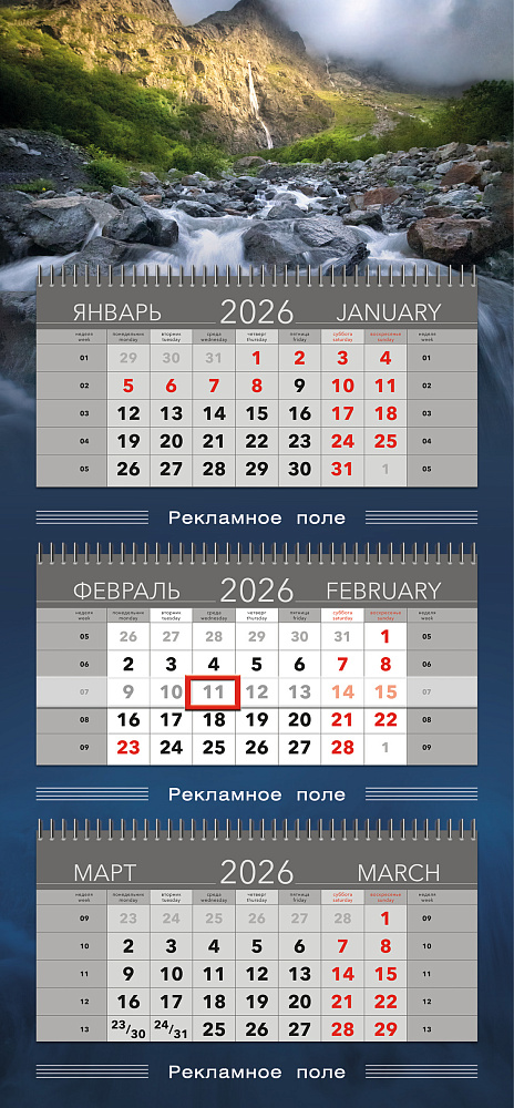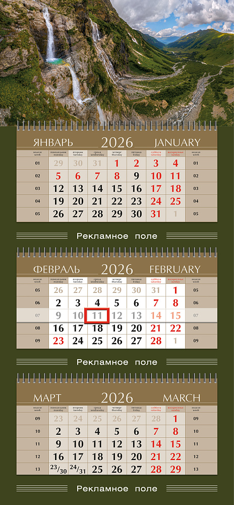 Формат: календарь — 390 х 840 мм;