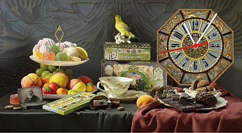 Верхний постер: типовой/индивидуальный, объемный пластик с полноцветной печатью, часовой механизм, элемент питания.