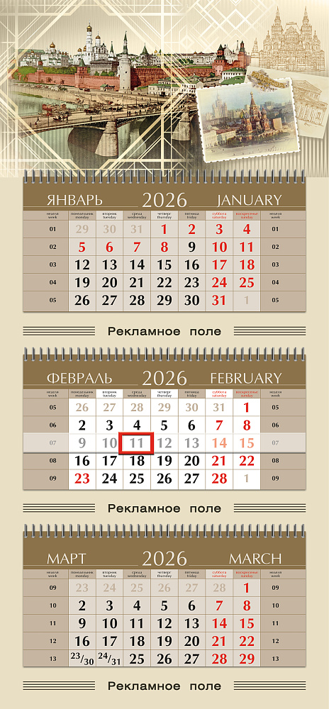 календарные блоки — 335 х 160 мм.