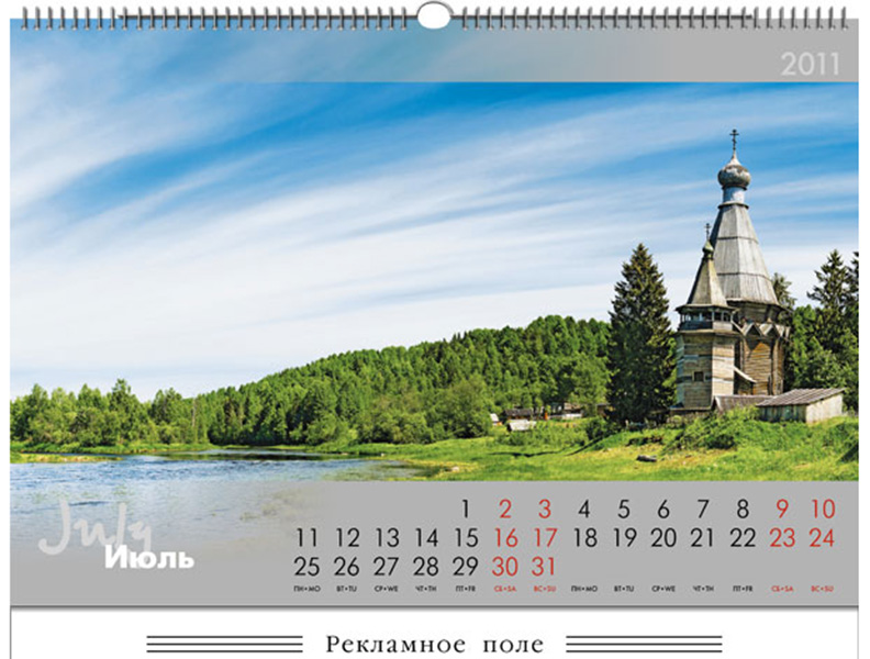Календарь посвящен вечной и всегда актуальной теме русской природы. Горизонтальная композиция и съемка широкоугольной камерой лучше всего передают широту российских равнин и полей, бескрайность лесов и рек. Эти пейзажи заставят на миг отрешиться от городской суеты, погрузившись в мир природной красоты и гармонии. Они наверняка вызовут ностальгический вздох у наших соотечественников и возглас удивления – у зарубежных друзей и партнеров.
