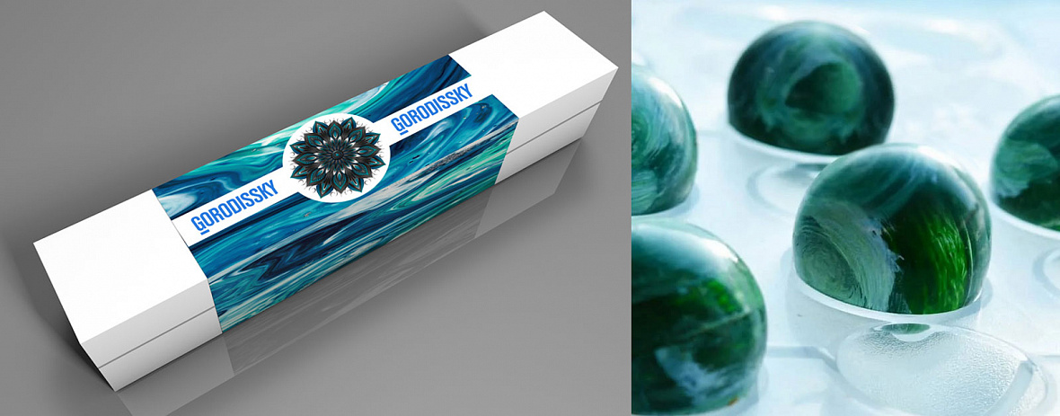 Отрисовали его графический образ, который будет на всех элементах набора, а текстура малахита подчеркнет уникальность и профессионализм р