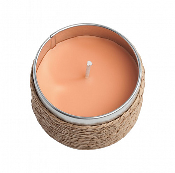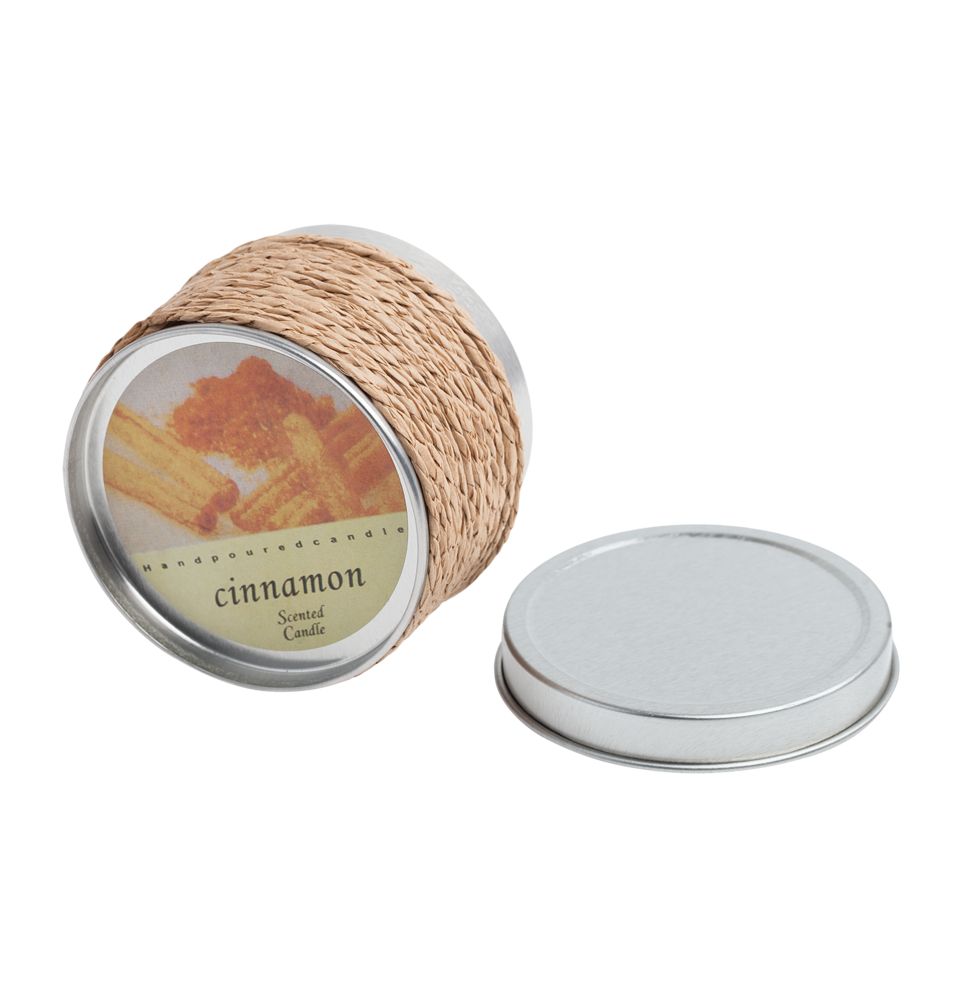 Cвеча c ароматом корицы в декоративной жестяной коробке.