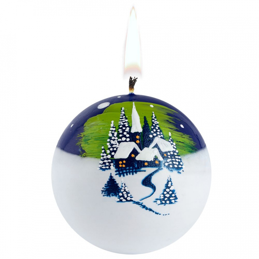 Свеча расписана вручную талантливыми мастерами, упакована в полиэтиленовый пакет и подарочную картонную коробку с окошком.