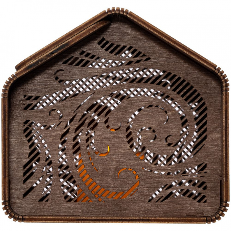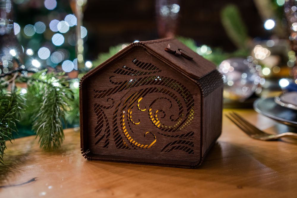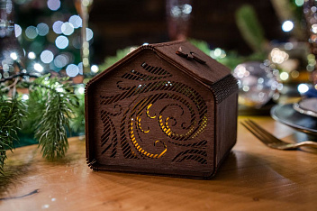 Светильник Lighthouse — это уютный домик, источающий тепло, воплощение места, где всегда светло. Если в специальное углубление поставить светодиодную свечу или просто положить внутрь гирлянду на батарейках, деревянные узоры оживают и перемигиваются по-настоящему праздничными огнями!