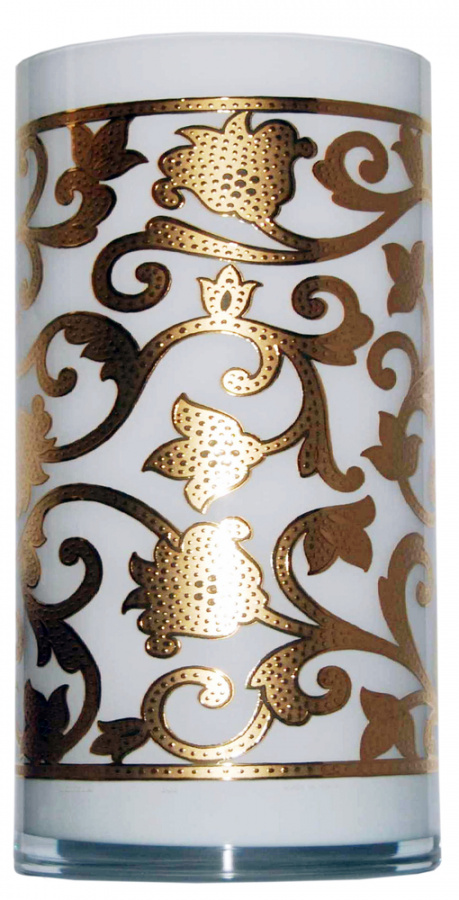 - декорирована вручную объемным напылением 24-каратного золота;