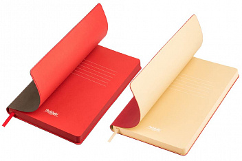 Гибкая матовая обложка выполнена из бархатистой искусственной кожи. Цвет – однородный, глубокий, слегка припудренный. На ощупь – мягкая, слегка прорезиненная, с эффектом soft-touch. В цветовой линейке – приглушенные и яркие тона. Интересная находка – контрастное сочетание цветов обложки и среза.