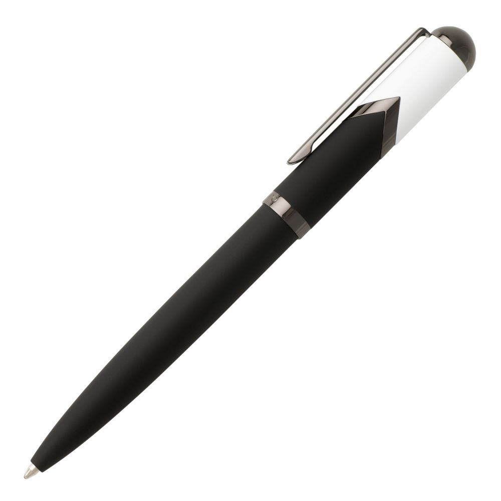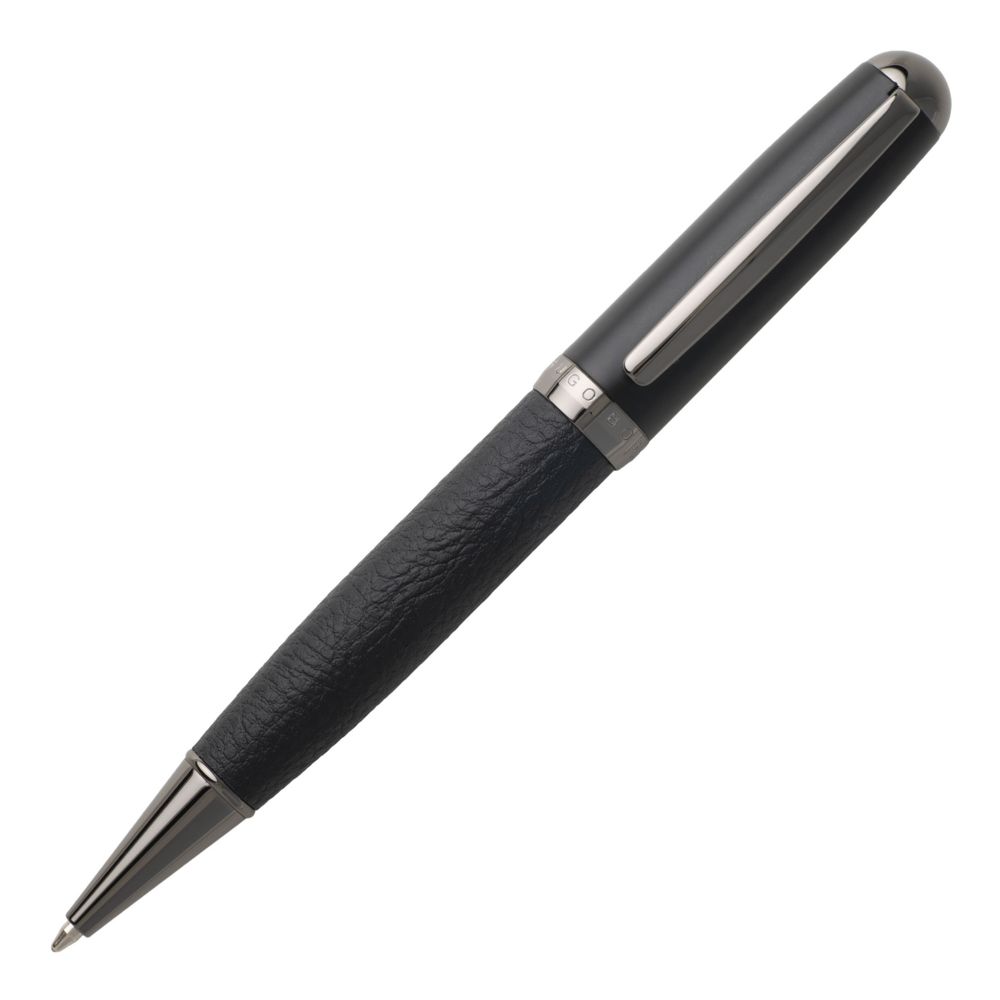 - ручка шариковая, стержень с синими чернилами; корпус с золотистыми деталями и вставкой из искусственной кожи.