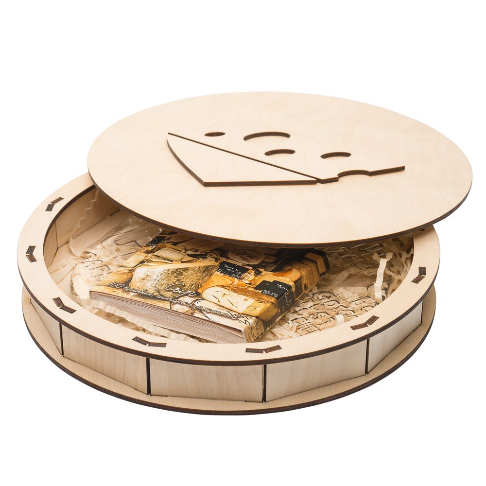 - в форме советов, секретов, легенд книга рассказывает о видах сыра, об умении сочетать сыр с другими продуктами, приводит интересные факты о его происхождении и производстве.Набор упакован в круглую шкатулку в форме головки сыра, которую можно использовать в дальнейшем для хранения любых мелочей.