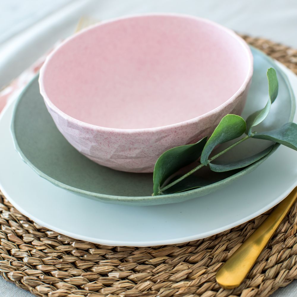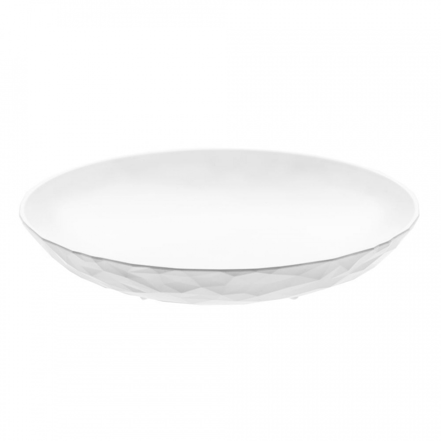 Тарелка изготовлена из пластика, но при этом достаточно тяжелая, чтобы порыв ветра не унес ее со стола, накрытого на террасе.